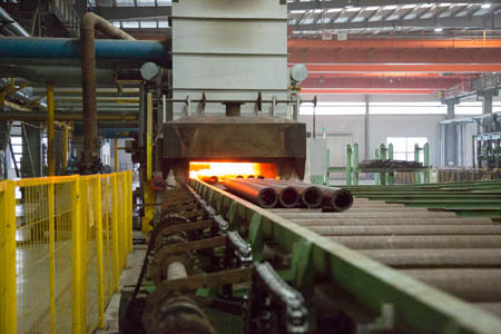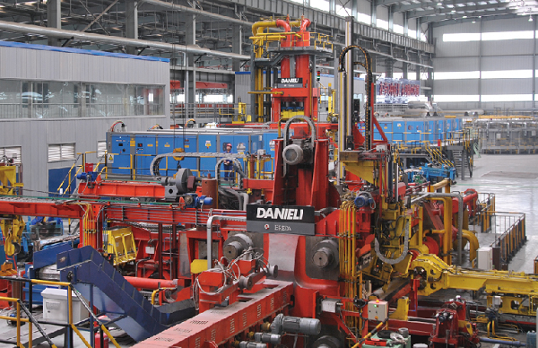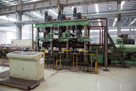 Imported Italian DANIELI 25MN vertical reaming machine and 63MN horizontal hot extruding press, highest extruding speed 300mm/s, largest extruding power 62.17MN, extruding pipe size: Φ57~325mm×4.5~60mm, length: 4000~24000mm, weight per billet: 1.5t, accuracy: diameter tolerance ±1%, wall thickness ±8%. Hot extruding technology is three directions stress bearing condition, producing round pipe, square pipe, profile, and has great advantage of high temperature alloy manufacturing.